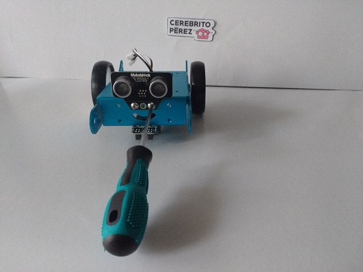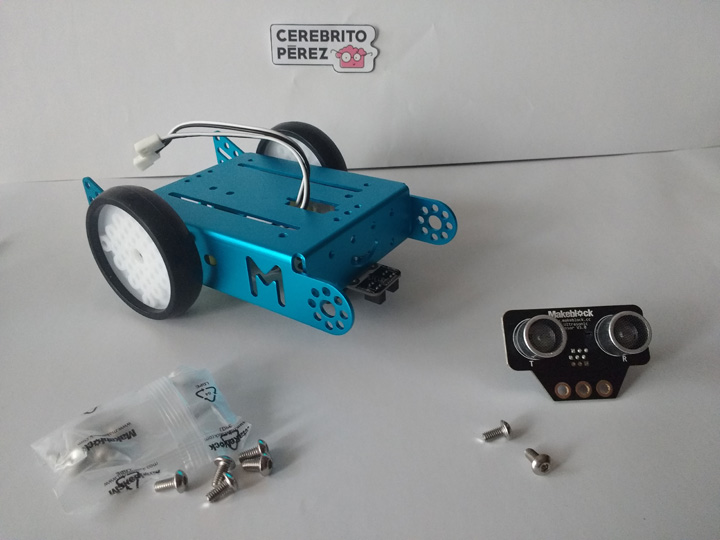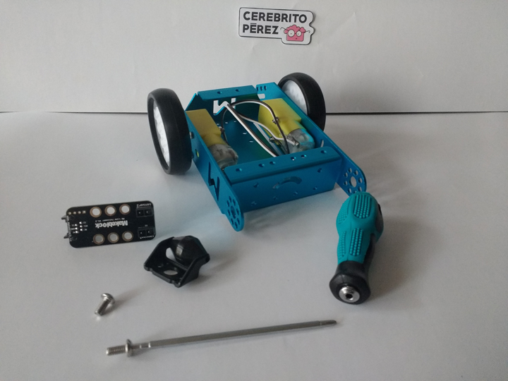 El sensor es una pieza que viene con dos círculos grandes, debemos colocarla en la parte delantera del robot y atornillarla.