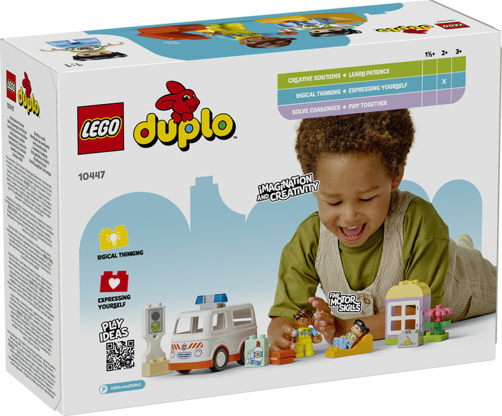 • Juego de interpretación creativo para bebés: Los preescolares aprenden sobre la empatía mientras imaginan cómo se siente la paciente usando la rueda de juego digital incluida en las instrucciones de construcción disponibles en la app LEGO® Builder