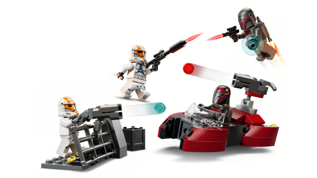 • 4 MINIFIGURAS LEGO® STAR WARS™: Equipa a los 2 supercomandos Mandalorianos con 2 mochilas propulsoras y 3 pistolas bláster, y a los 2 soldados clon de la 332 con un bláster y un fusil bláster