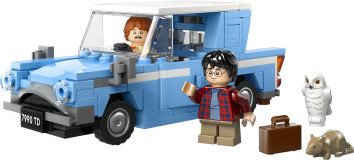 • Ford Anglia de juguete: Cuenta con puertas que se abren, techo desmontable, asientos para las 2 minifiguras y espacio en la parte de atrás para Hedwig™, además de un maletero abatible en el que caben las varitas, la maleta y Scabbers™