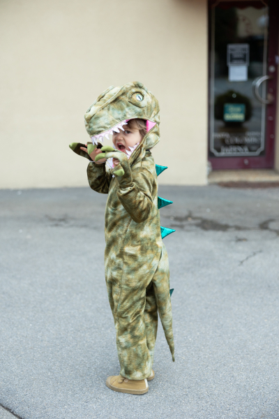 Disfraz completo de T-Rex, con detalles realistas y colores vivos. Ideal para niños pequeños que aman el mundo jurásico.