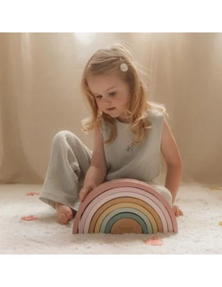 ¡Apila, clasifica y construye! Este arco irís amarillo y verde ofrece infinitas posibilidades creativas más allá de simplemente apilarlo para formar un arcoíris. Construye esculturas, crea túneles para trenes y autos, usa tu imaginación y encontrarás infinitas ideas para jugar con los arcos. Fabricado en madera, este apilador de arcoíris fomenta el juego imaginativo y mejora las habilidades motoras finas. Descubre la versatilidad de este juguete y sorpréndete con las innumerables formas en que se puede disfrutar. Además, agrega un toque encantador a la decoración de cualquier habitación infantil.