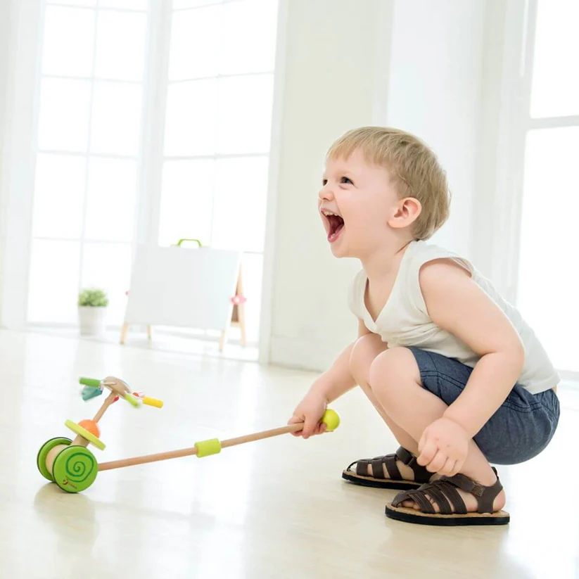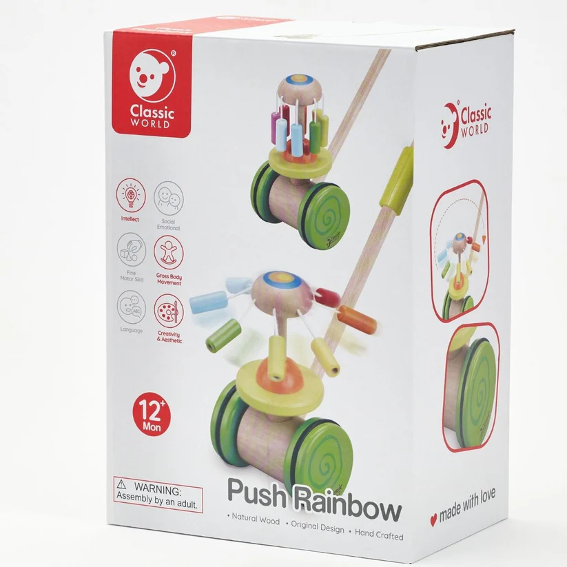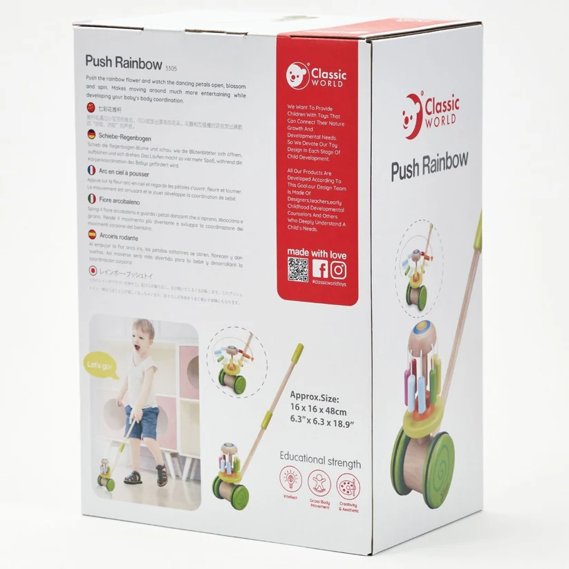 Empuja este arrastre palo arcoiris y observa cómo se abren, florecen y giran sus pétalos. Ayuda a desarrollar la coordinación y el equilibrio de l@s peques.