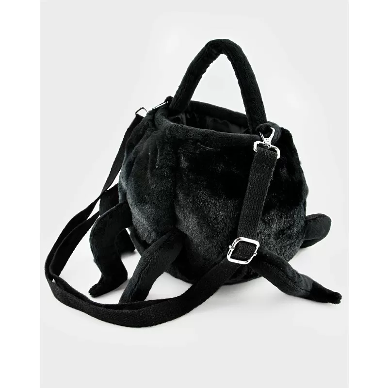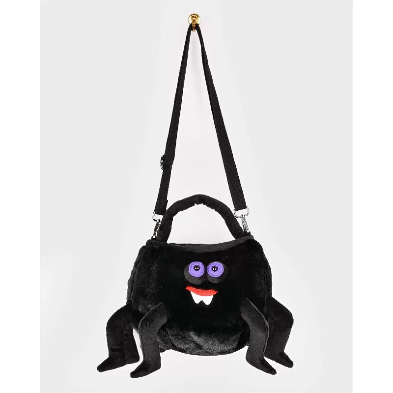 Un bolso de ocho patas… un caldero de araña… o un caldero de araña… ¿no te lo imaginabas? ¡Pues voilá! Nuestro adorable bolso con forma de una traviesa arañita/caldero. Perfecto para dulces, pero también para salidas. El bolso tiene una correa de hombro ajustable y extraíble y un compartimento secreto en la parte inferior con cierre de velcro. ¡Nos encanta!