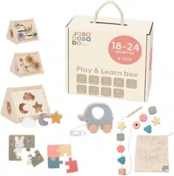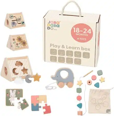 Caja Regalo Juega y Aprende – 4 juguetes de madera para bebés 18-24 meses