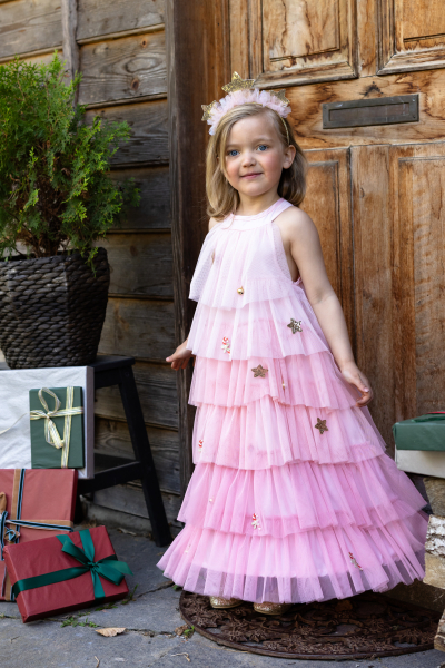 Christmas Tree Dress & Headpiece. Rosa (Talla 3-4)