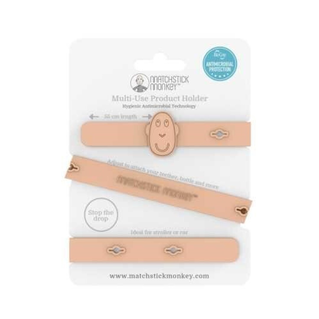 El diseño universal funciona con el chupete favorito de tu bebé, cualquiera de tus mordedores Matchstick Monkey e incluso juguetes pequeños.
