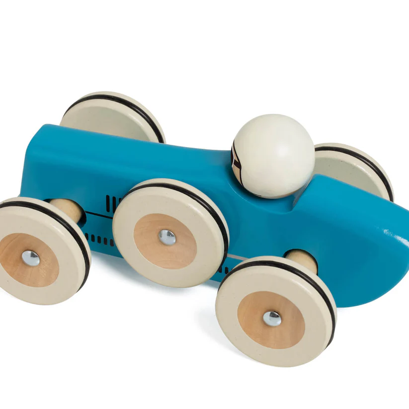 Fabricado a mano con madera FSC, este coche también es una excelente pieza de colección para niños y niñas mayores.