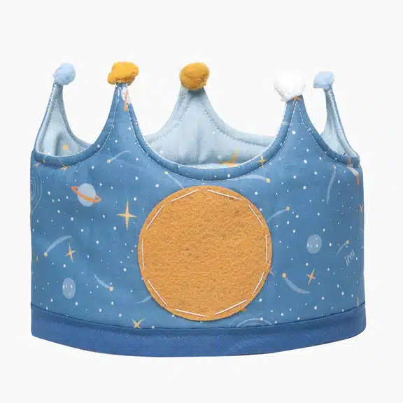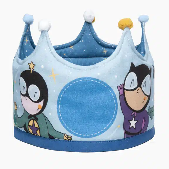 13,92Alegre y cómoda corona de cumpleaños reversible. Fabricada en tela de algodón reversible. Por un lado, superhéroes, extraterrestres y naves espaciales, por el otro un universo azul iluminado por estrellas fugaces y planetas fantásticos. Acolchada para mayor comodidad, cierre ajustable de velcro y decorada con unas divertidas borlas a juego. Un bonito regalo que acompañará la celebración año tras año. Incluye una preciosa caja de presentación y un pack de números del 0 al 9.