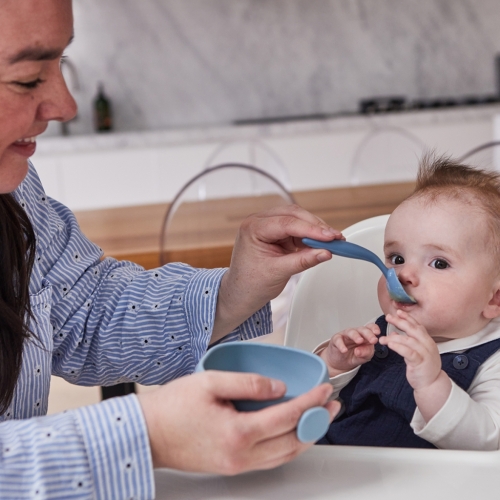 – El mango exclusivo ofrece un mejor agarre y control para la alimentación dirigida por los padres.