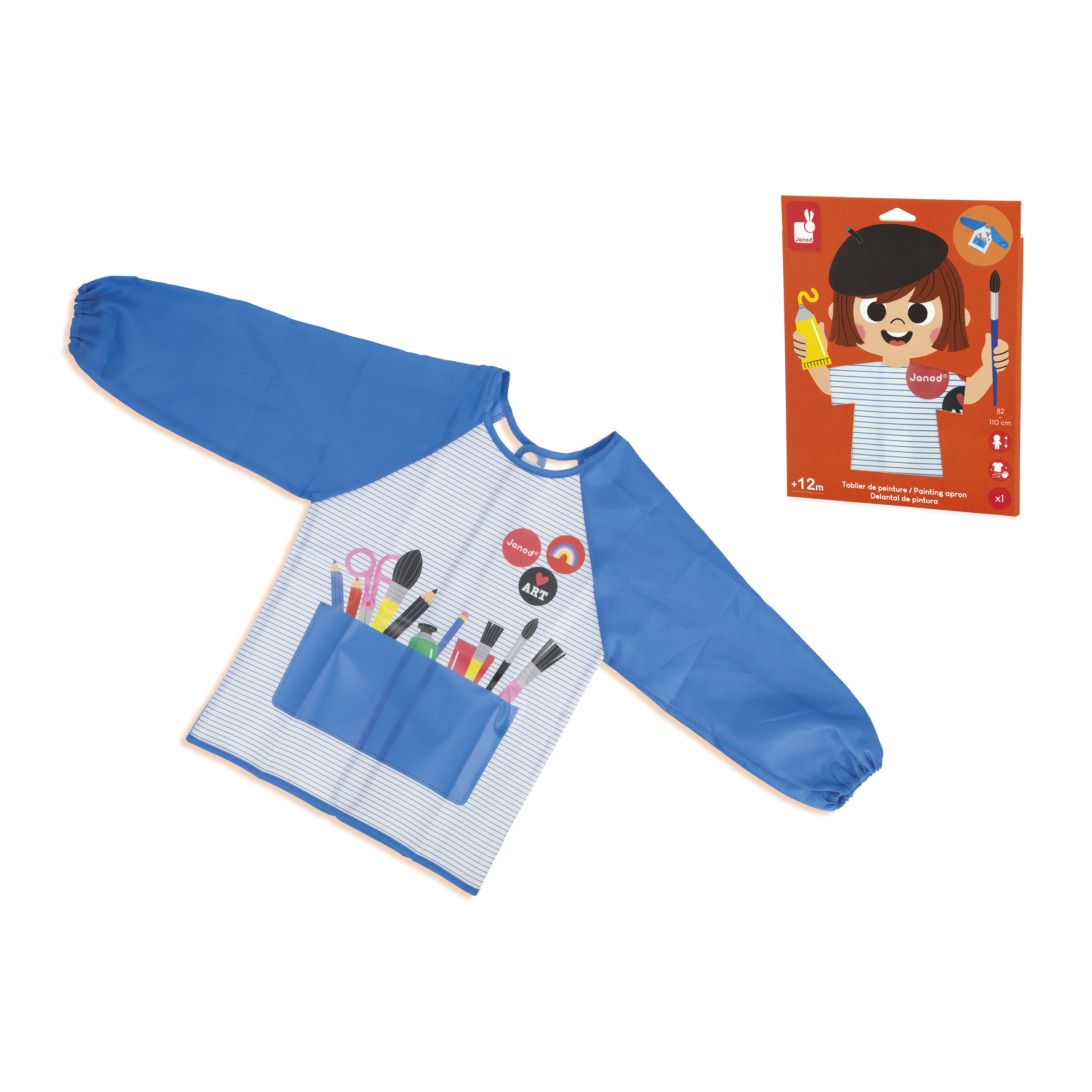 Imprescindible para las primeras actividades creativas, este delantal protector de manga larga permite a su hijo pintar con total libertad, sin miedo a las manchas.