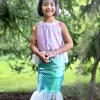 Pero la magia no termina ahí: la falda estilo sirena hecha de delicado tul completa el look y permite que tu pequeña se deslice con gracia entre olas imaginarias. Con cada giro, el vestido cobra vida y transporta a tu pequeña a un mundo de maravillas acuáticas.