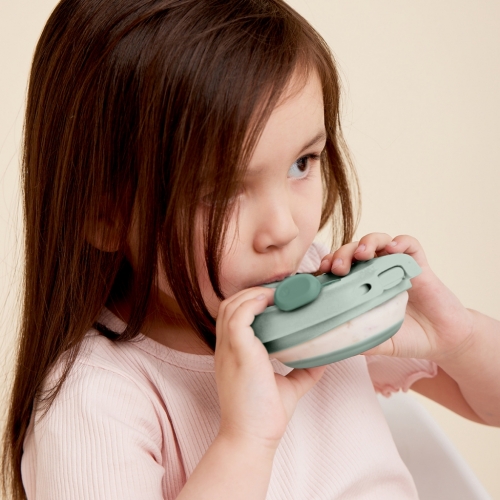 – Los niños beben intuitivamente de la boquilla. Los adultos pueden ayudar apretando el dispensador y sirviendo una porción en una cuchara, para ayudar en los primeros días de aprendizaje.