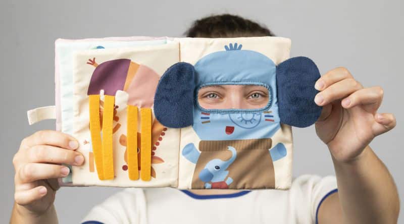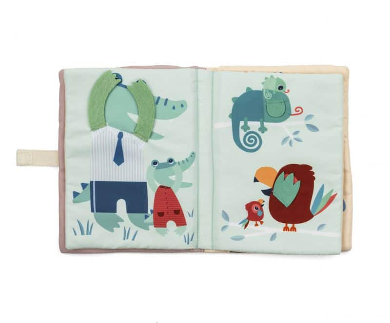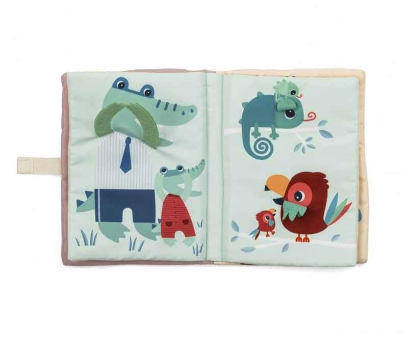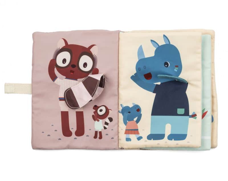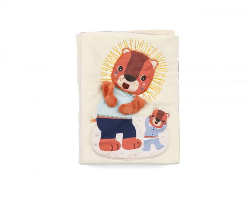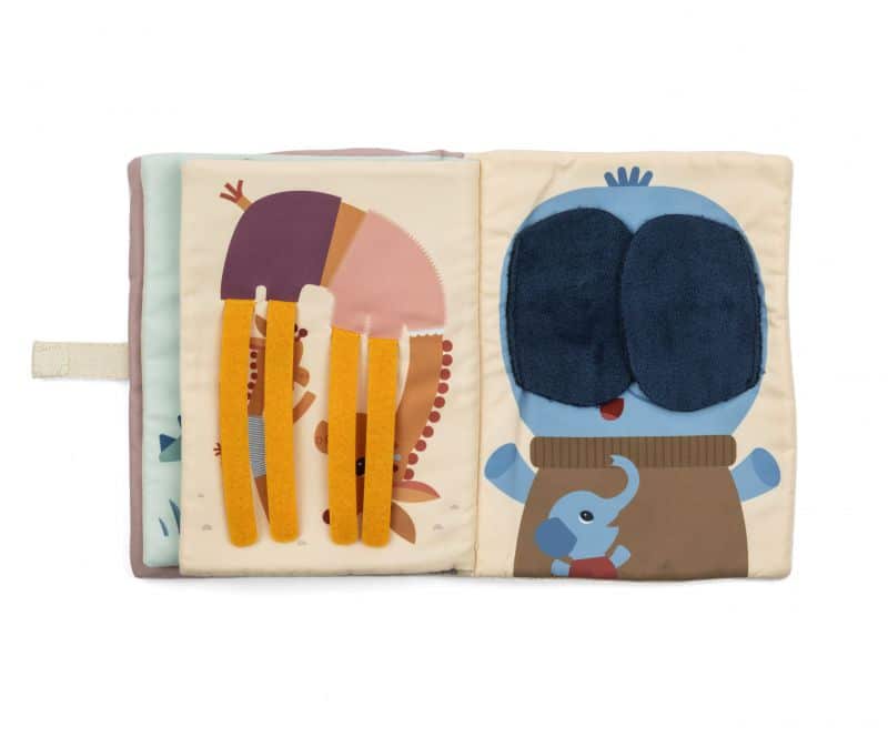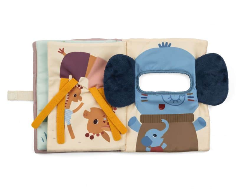 Cada página de este libro de tela presenta a un personaje que juega al cucú-tras cubriéndose los ojos: el león con sus patas, el lémur con su cola y en la última página, una gran sorpresa se esconde detrás de las grandes orejas del elefante. ¡Los niños se divertirán levantando o moviendo los elementos para descubrir los ojos y participar en el juego!