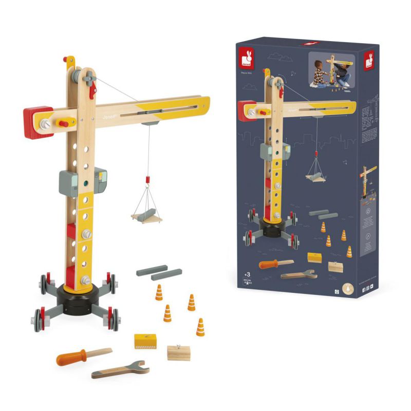 ¿Quién no ha soñado alguna vez con construir las casas más bonitas, los puentes más largos y sumergirse en el corazón de las obras más grandes? Es el momento de tomar las riendas de esta fantástica grúa de madera. Fácil de manejar, ofrece una rotación de 360°, una cabina que sube y baja y un cabrestante que se mueve hacia delante y hacia atrás. La carga se puede manejar de arriba a abajo y de delante a atrás con sus 2 manivelas. Además, un ingenioso sistema permite detener la caída de la carga si esta es demasiado pesada. ¡La grúa es móvil (ruedas silenciosas) y tiene un sistema de estabilización como los de verdad! ¡Para pasar horas jugando con perspectiva! Incluye 12 accesorios, incluidas 2 herramientas. Juguete de imitación de madera FSCTM para niños a partir de 3 años.