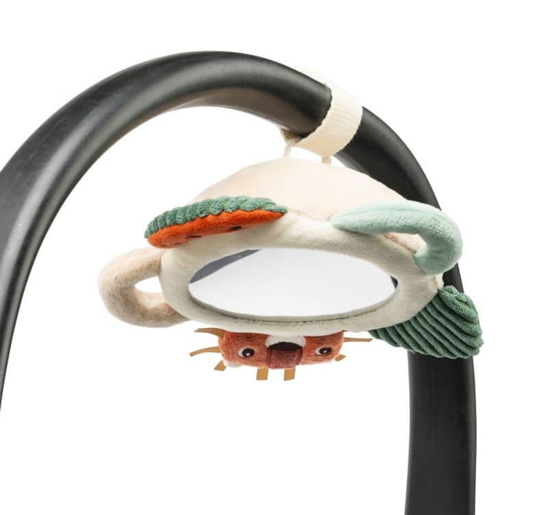 Un espejo sorprendente rodeado de suaves actividades para estimular al bebé. Boca abajo, se divierte descubriendo su reflejo y explorando los pequeños juegos sensoriales que lo rodean. Además, gracias a un pequeño lazo, el espejo también puede colgarse y acompañar al bebé a todas partes.