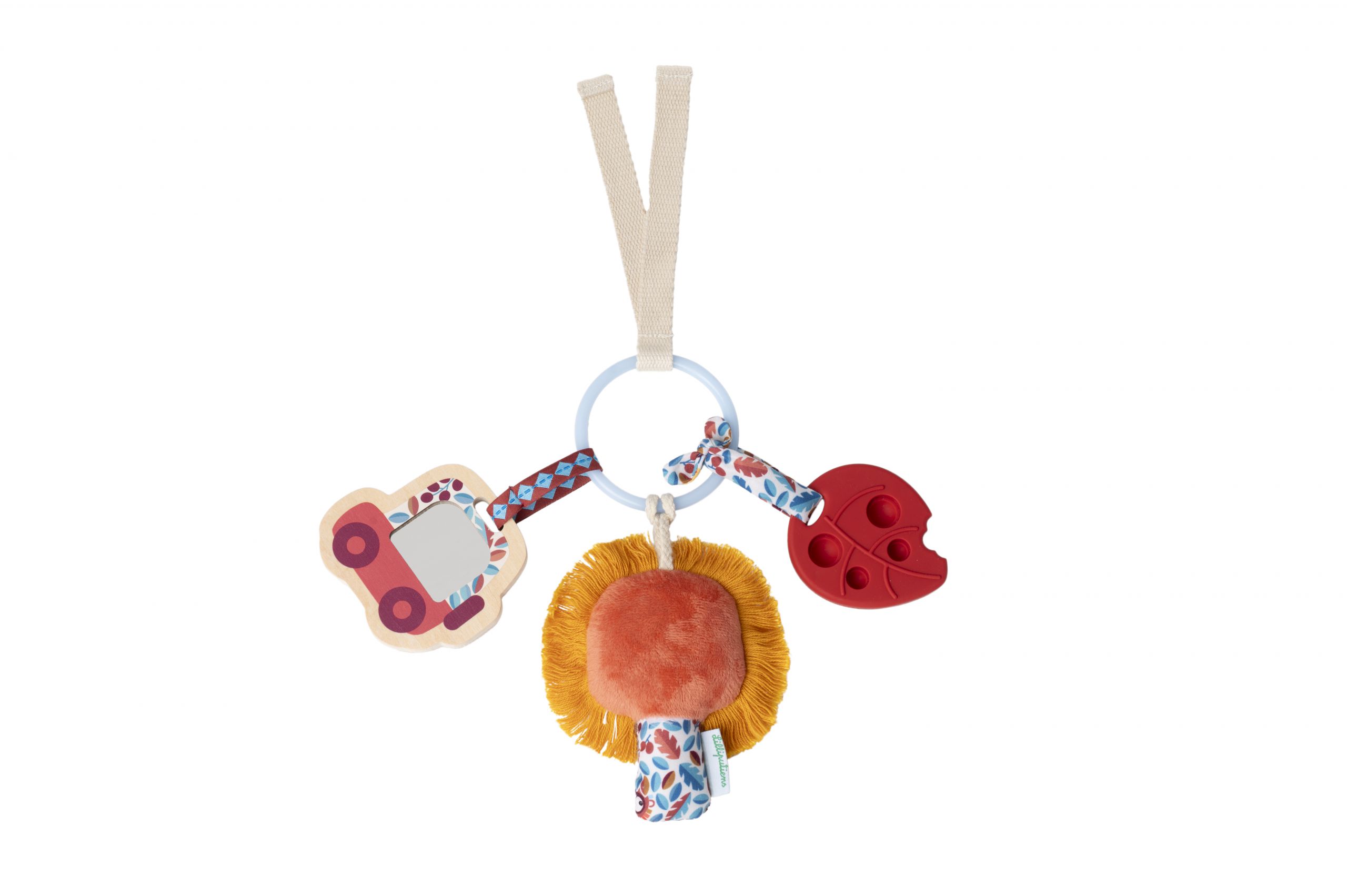 Una diversa gama de materiales, colores y un sonido de sonajero hace de este llavero una auténtica experiencia de descubrimientos para los más pequeños.