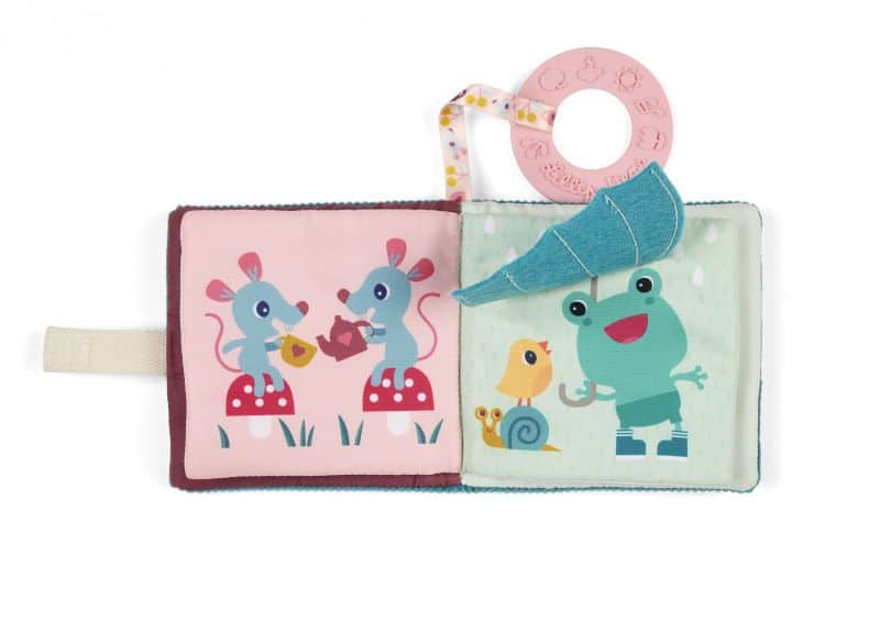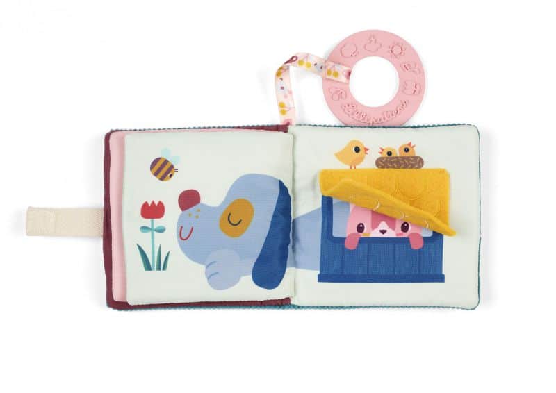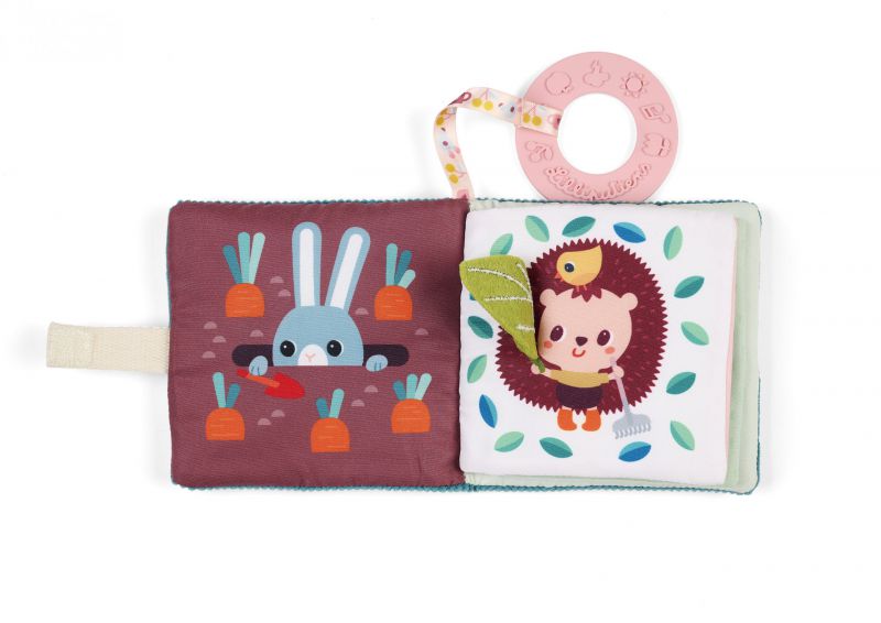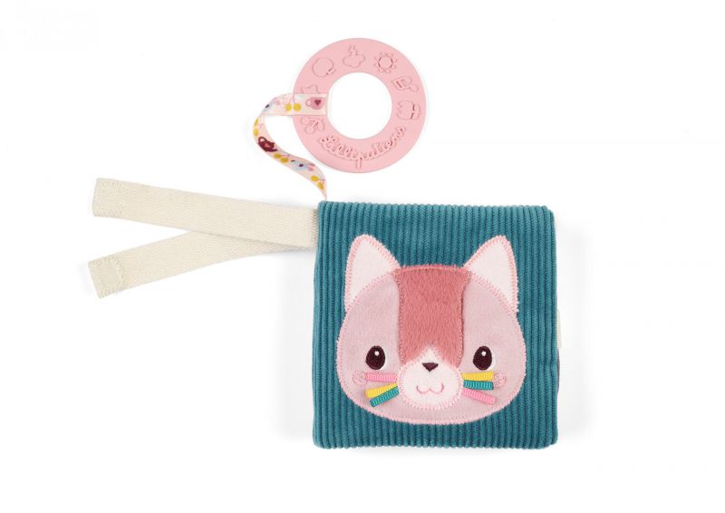 ¡Un suave librito de imágenes con Jeanne la gatita para despertar al bebé con dulzura! Sus páginas coloridas invitan a descubrir y explorar con el tacto. Práctico, incluye un anillo de dentición para calmar las encías y acompañar al bebé en todo momento del día.
