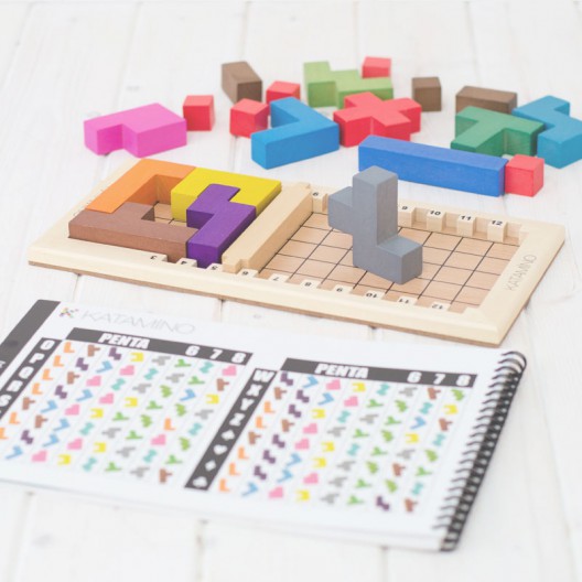 Adaptado a todas las edades, permite que los más jóvenes puedan entender la geometría espacial. Según la posición de la regleta, hay que realizar conjuntos perfectos combinando un determinado número de Pentaminos. Cuanto más aumenta este número, más se incrementa la dificultat. ¡Hay 36057 combinaciones!