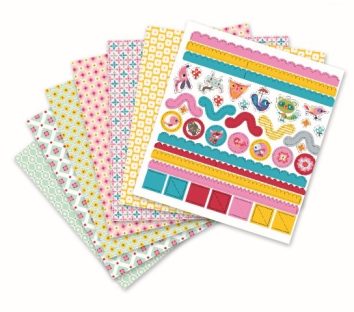 -Un estuche de origami con papeles de refinados estampados de moda para crear 24 cajitas y decorarlas. Siguiendo las explicaciones del cuadernillo, el niño pliega las hojas hasta realizar 3 modelos de cajas distintos. Luego los puede personalizar con las pegatinas.