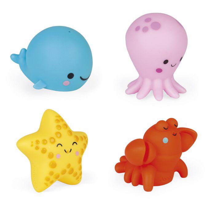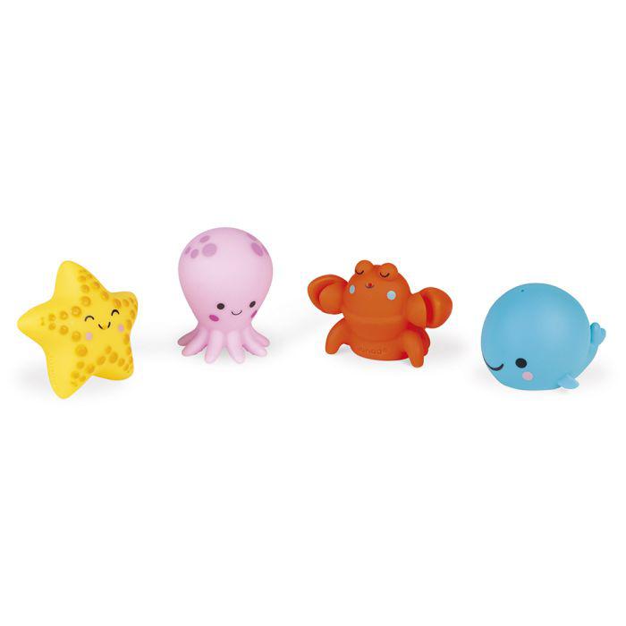 4 animales del mar: un pulpo, un bogavante, una estrella de mar y una ballena.