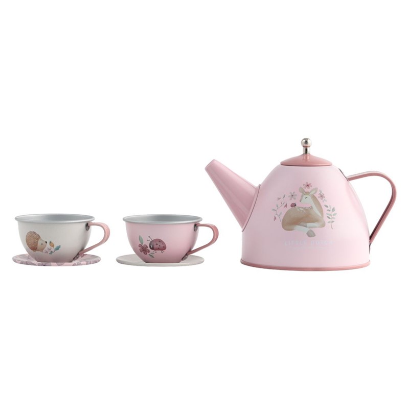 Tu pequeño organizará las fiestas de té más divertidas con el juego de té de Little Dutch con diseño de jardín de hadas. Este juego de té en lata incluye dos tazas de té, dos platillos, una bandeja y una tetera con tapa. Guarda el juego en el bonito estuche de picnic y llévalo contigo a donde quiera que vayas. El estuche presenta un colorido estampado de arcoíris. Jugar con el juego de té también estimula las habilidades motoras y sociales de tu hijo. Apto a partir de los 3 años. Material: metal.