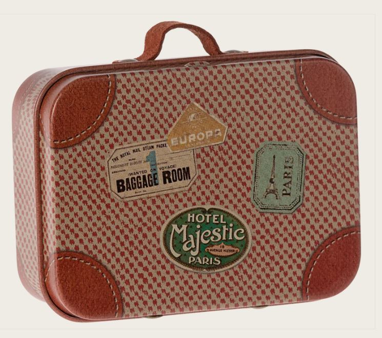 Esta pequeña maleta con coloridas ilustraciones y bonitos detalles se puede utilizar para cualquier ocasión: pequeños regalos, almacenar pequeños objetos o para que los ratoncitos y conejitos traigan sus pertenecias consigo mientras viajan.