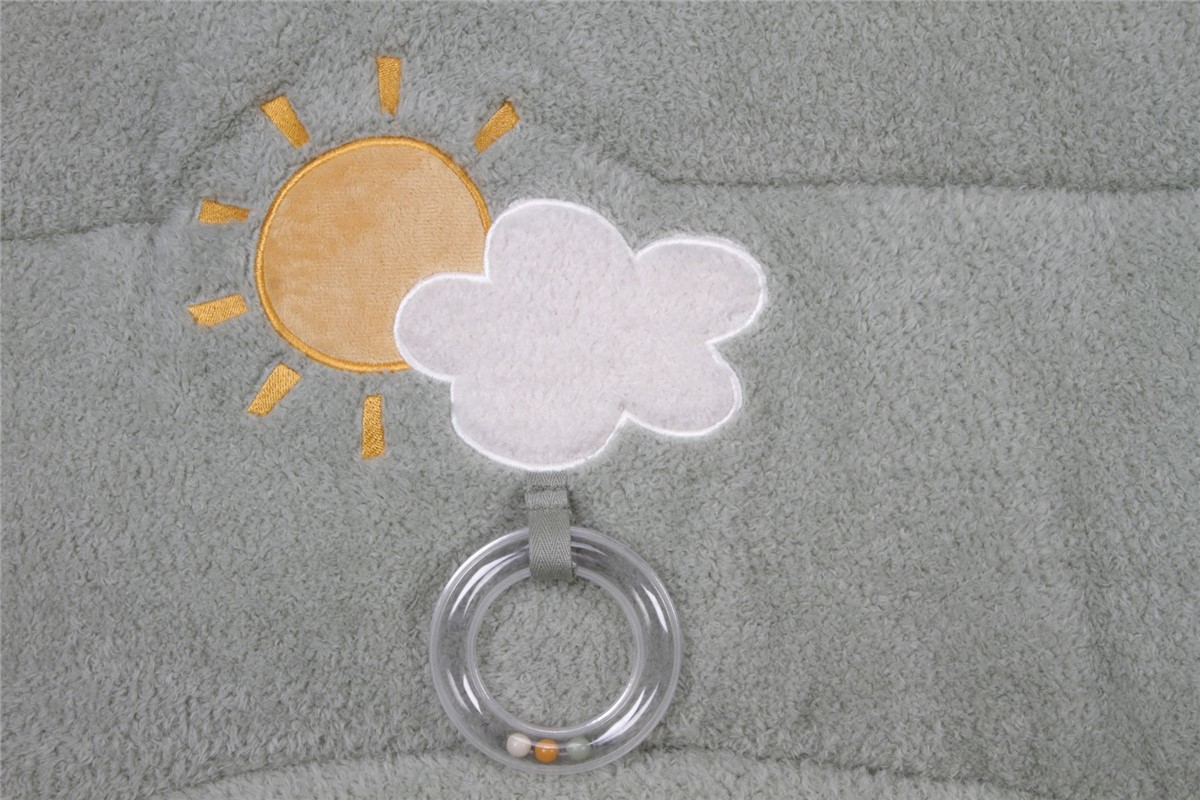 Esta manta de juego acolchada de Little Dutch de la colección Little Farm, estimula el interés de su hijo y sus sentidos con sus diferentes texturas y actividades. Hay mucho por descubrir ¡y ver! Las alitas de la gallina hacenun sonido crujiente, y puedes descubrir lo que se esconde debajo de ellas. Las nubes tienen una suave tela de peluche y hay varias etiquetas por descubrir. También hay un anillo de dentición adjunto.