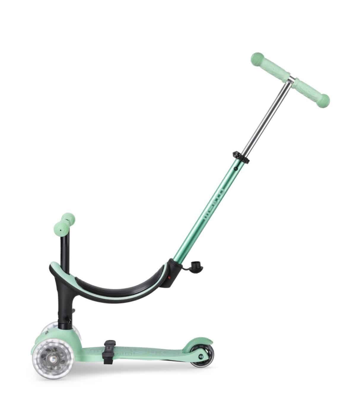 El Micro Mini2Grow Deluxe Magic LED ofrece una variedad de opciones para adaptarse a las etapas de desarrollo de tu hijo. Comienza con un asiento, dos opciones de reposapiés y una barra de empuje para los padres. A medida que tu hijo crece, el patinete se puede utilizar sin la barra de empuje, convirtiéndose en una mezcla entre una bicicleta de equilibrio y un patinete. Finalmente, se transforma en un clásico Mini Micro Deluxe con luces LED en las ruedas.