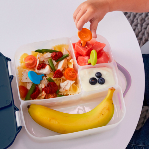 Sus exclusivas púas redondeadas son ideales para que los pequeños puedan pinchar alimentos y comer de manera segura, incluso si tienen encías sensibles. Los mangos grandes facilitan el agarre y ofrecen mayor control al comer. Además, su diseño compacto hace que quepan perfectamente en la mayoría de las fiambreras y depósitos B.Box, ya sea para la escuela o para llevar a cualquier lugar.