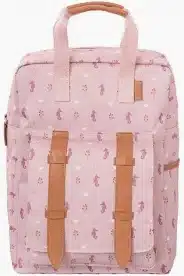 – Mochila con un bonito estampado y diferentes compartimentos: un amplio bolsillo interior de cremallera (apto para carpeta Din-A4) y bolsillo pequeño frontal imantado.