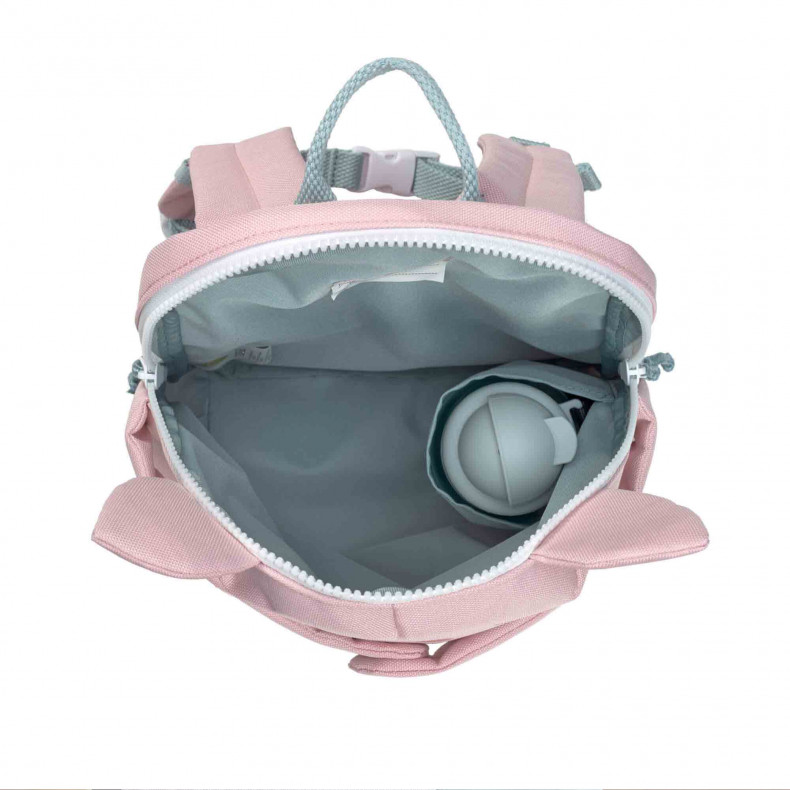 La mochila Bo pig pueden cobrar vida con sus lindas orejas y largos brazos y piernas. Los imanes en las orejas, los ojos, la boca y los brazos brindan una dosis extra de diversión para los niños. Las mochilas para niños repelentes al agua tienen un espacioso compartimento principal, correas para los hombros y el pecho regulables en altura, un porta botellas en el interior y una etiqueta con el nombre para evitar confusiones. Esta súper mochila de animales para niños de la gama LÄSSIG tiene una capacidad de 5,4 litros y es una maravillosa compañera a partir de los 3 años. Instrucciones de uso: no planchar, no usar lejía, no secar en secadora, no lavar en seco, no lavar, limpiar con un paño húmedo para limpiar