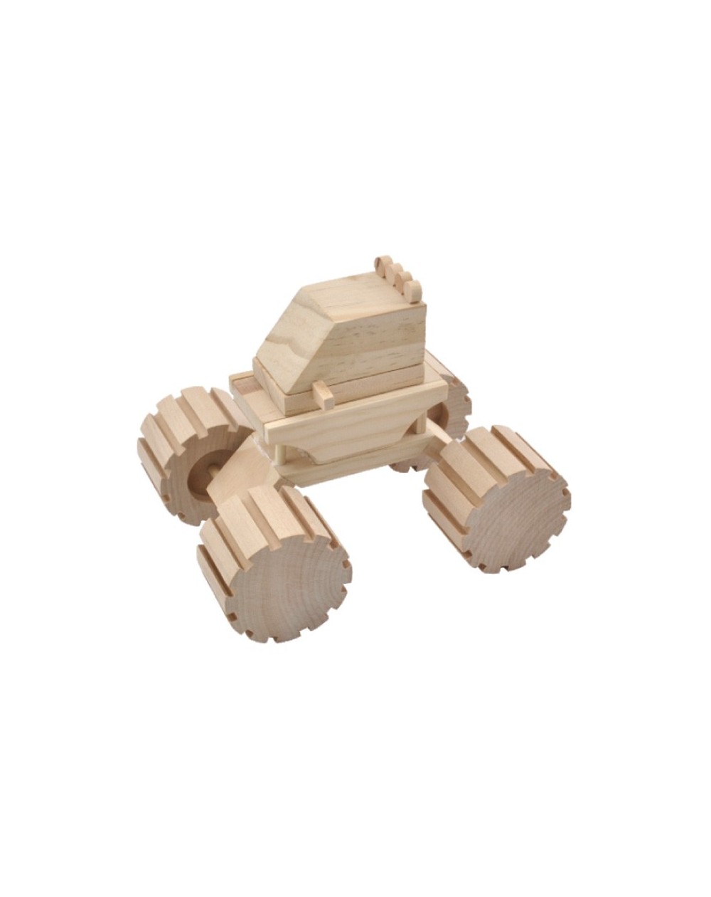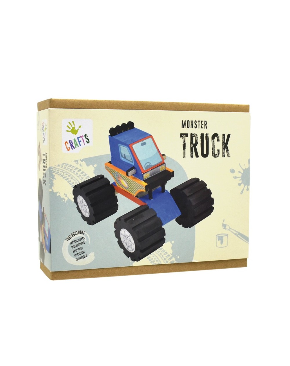 Monta y decora tu Monster Truck. Contiene: piezas de madera, pegamento, pincel y adhesivos.