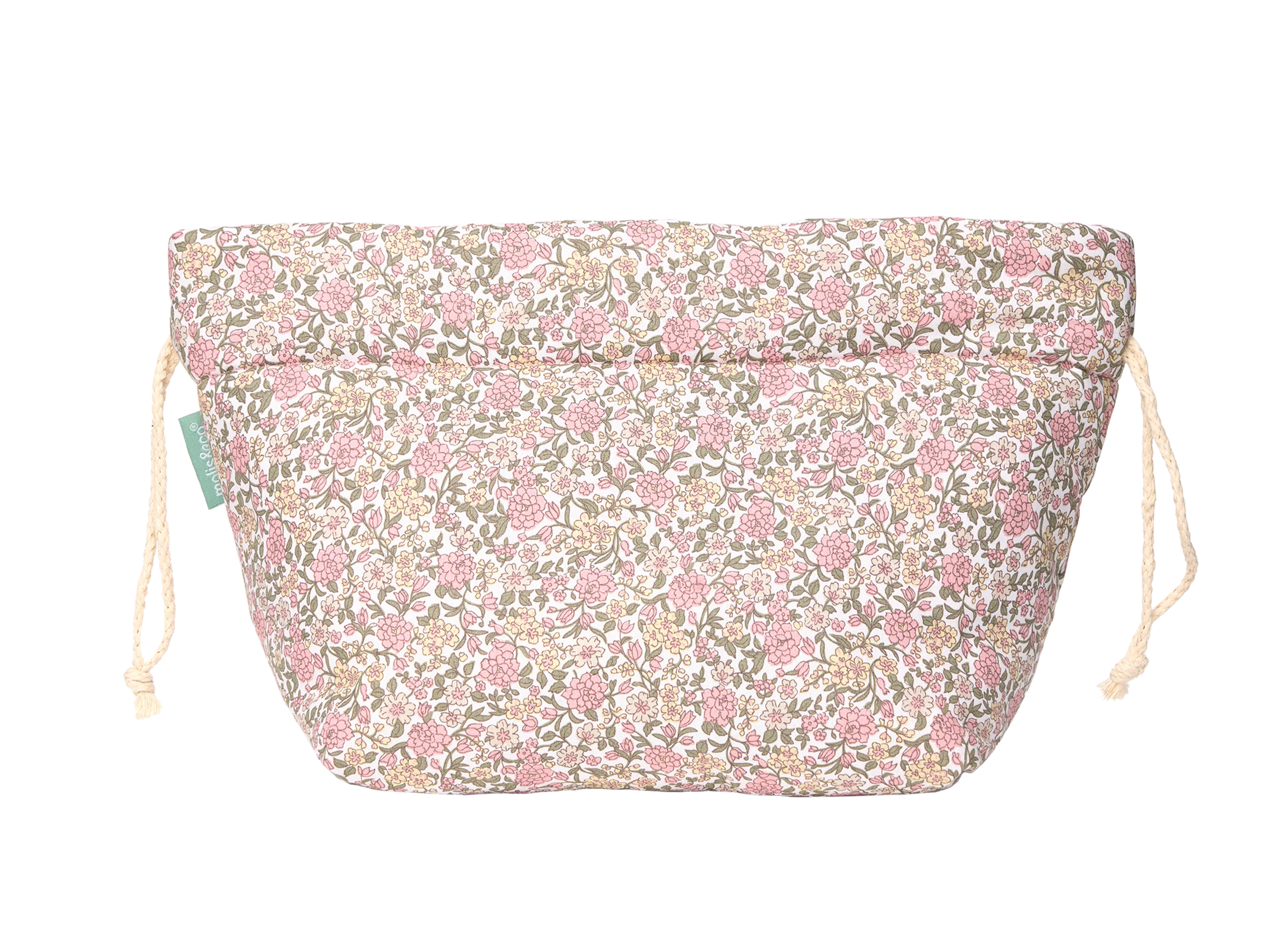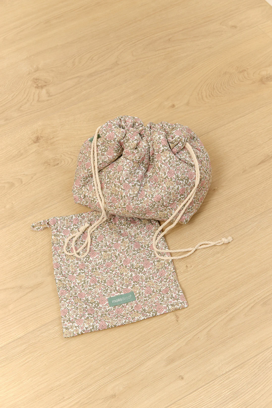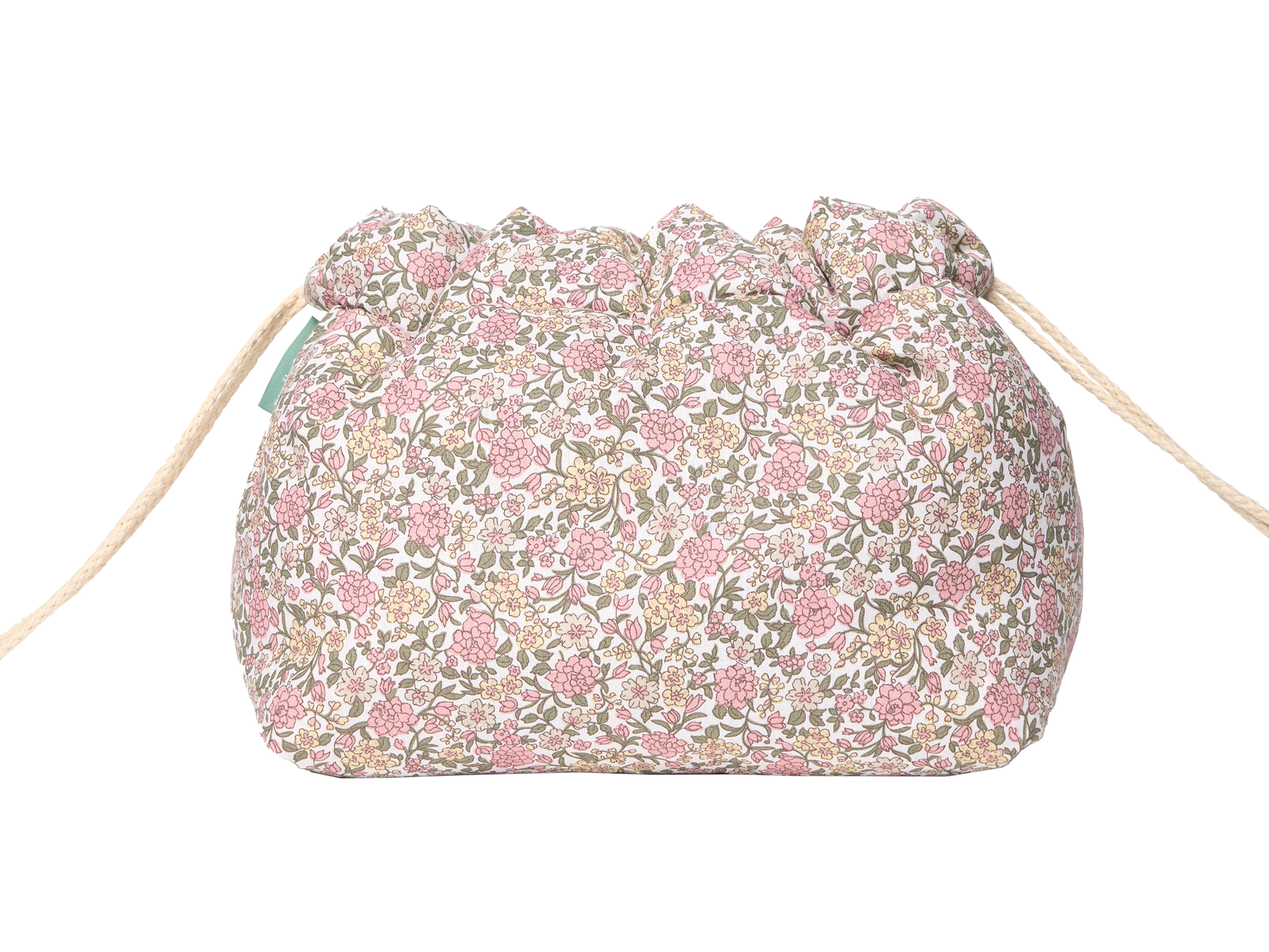 Cierre con cuerdas. Tamaño muy generoso sin ser demasiado grande. Combínalo con nuestros bolsos de carro reversibles.
