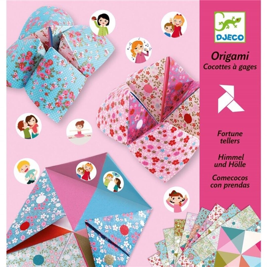 -Di un número… Elige un color… ¡Un clásico de los patios de recreo! Este estuche de origami sirve para hacer 24 comecocos con prendas para jugar con los amigos. Unas hojas con alegres estampados, una forma de doblarlas sencilla y bien explicada en el cuadernillo, así como 3 láminas de divertidas pegatinas de prendas para pegarlas debajo de las solapas y… ¡horas y horas de diversión por delante!
