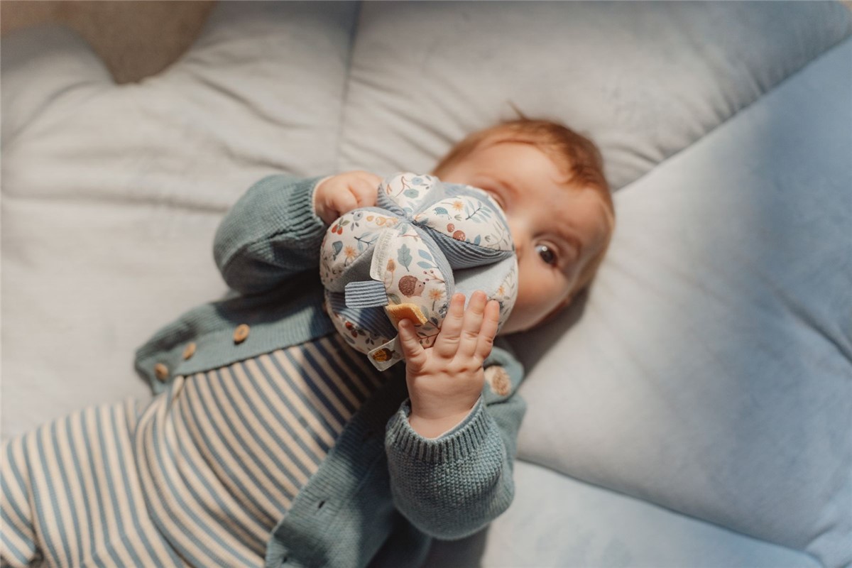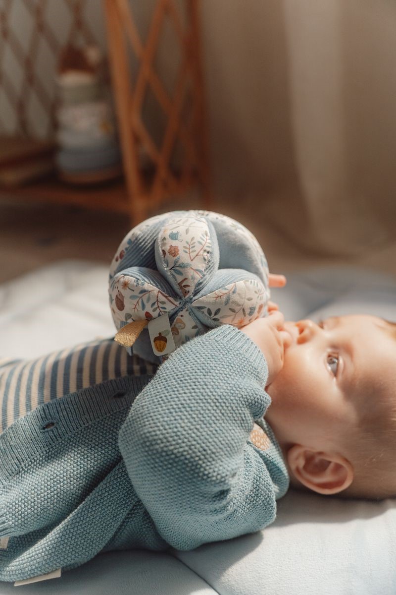 ¡Agarra y llévala! Esta pelota de agarre con su forma interesante es un gran desafío para tu pequeño. Hay muchos lugares para agarrar y explorar con diferentes texturas y patrones. Es fácil de agarrar para las pequeñas manos y cuando se mueve, el alegre sonido del sonajero animará a tu bebé. En la dulce decoración de Forest Friends, los nudos fáciles de agarrar y las diversas etiquetas estimularán los sentidos, desarrollarán el agarre y mantendrán a tu bebé entretenido en el parque infantil.