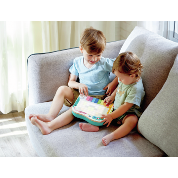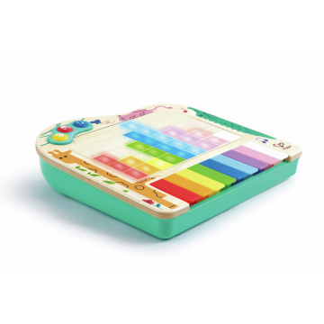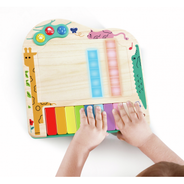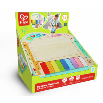 Pixel Piano de Hape. El galardonado Pixel Piano es una herramienta multifuncional diseñada para el desarrollo sensorial y cognitivo. Con tres modos atractivos, permite a los/as niños/as explorar tonos de piano, descubrir sonidos de animales pixelados y seguir teclas iluminadas para aprender melodías. Con colores vibrantes en las teclas, luces interactivas y control de volumen, el Pixel Piano crea un entorno seguro y divertido para que los/as músicos/as en ciernes den rienda suelta a su creatividad mientras mejoran las habilidades motoras finas, el reconocimiento de colores y el ritmo.
