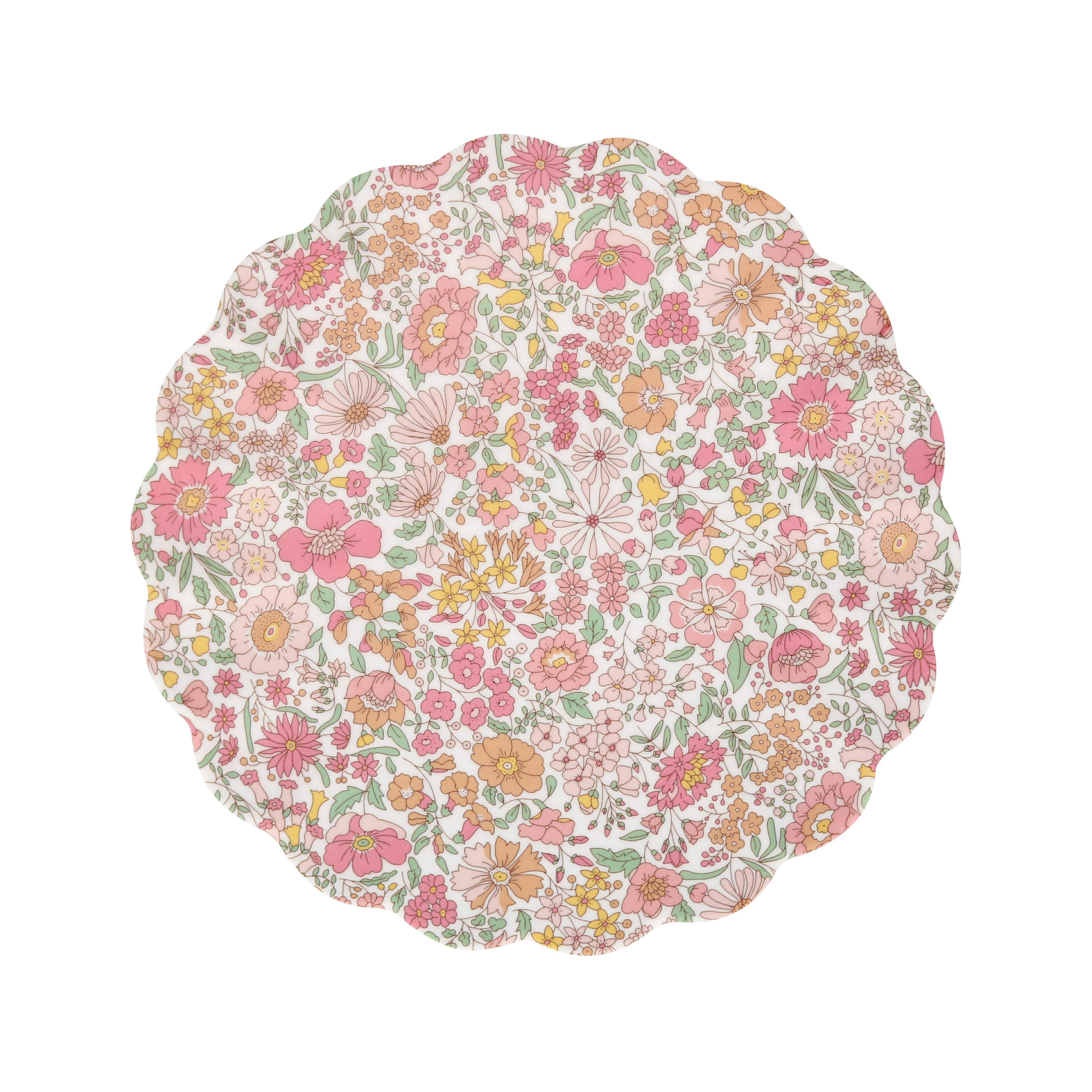 Este plato pequeño de melamina con un exclusivo estampado floral de Liberty es ideal para servir postres, frutas o meriendas. Su formato compacto y resistente lo convierte en un imprescindible para celebraciones tanto en interiores como exteriores.