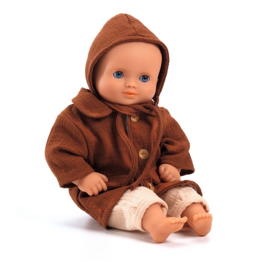 -¡Es otoño! Los bebés están muy elegantes con este conjunto de entretiempo compuesto por un grueso abrigo de algodón y un gorrito para que el bebé no se resfríe durante sus paseos entre los colores de esta época.