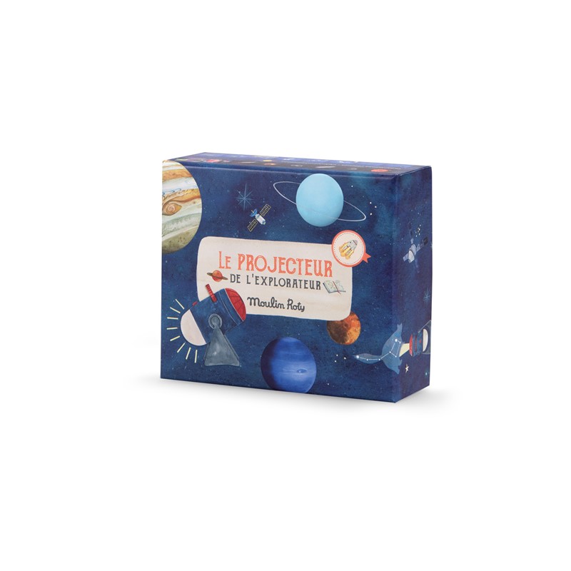 El proyector Explorer te permite proyectar bonitas ilustraciones en la pared o el techo. Dispone de 4 discos de 8 diapositivas. Gracias a ellos, tu hijo descubrirá el espacio, las constelaciones, los planetas y las máquinas.