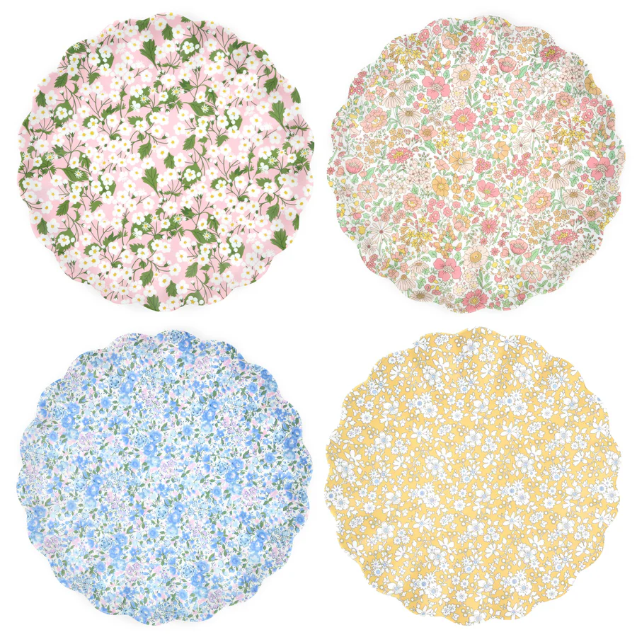 Cada plato presenta un estampado Liberty diferente, con suaves tonos que combinan a la perfección con cualquier temática de fiesta: desde una merienda en el jardín hasta una celebración especial en casa o un picnic con encanto.