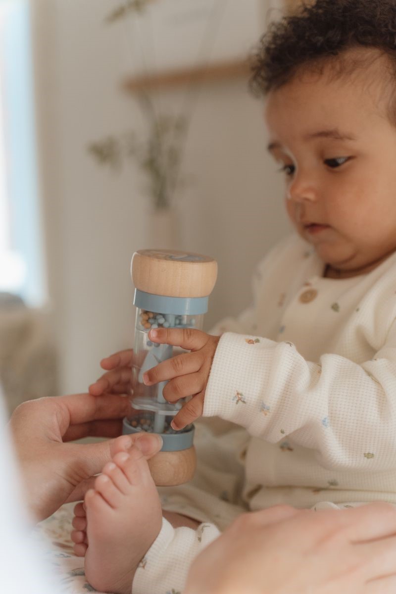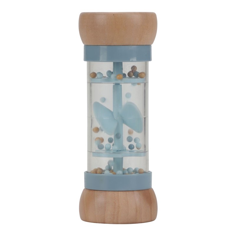 ¡Agítalo y haz sonar! Gira el sonajero de lluvia y escucha el sonido relajante de las bolas que se mueven de un lado a otro del generador de lluvia. Estimula el desarrollo sensorial y el talento musical de tu bebé. Las bolas caen a través de pequeñas aberturas en el tubo y hacen girar la hélice, lo que produce un sonido agradable. El sonajero de lluvia está diseñado para manos pequeñas y es cómodo de sostener. La parte superior e inferior de madera están decoradas con una ilustración de un pequeño zorro y un par de hongos de la colección Forest Friends.
