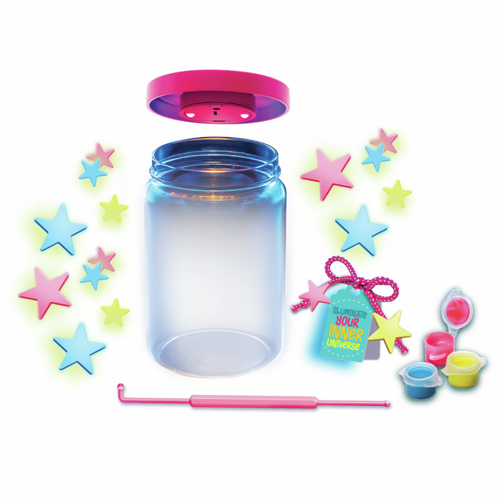 El Set de Manualidades incluye un frasco de plástico resistente, una cubierta para luz LED y pilas botón para iluminación inmediata. Con tres pinturas de tela neón vibrantes, los niños pueden crear diseños únicos en el frasco. Una herramienta de pintura especial de doble punta permite realizar patrones intrincados, especialmente en el fondo. Aproximadamente 20 estrellas que brillan en la oscuridad añaden un efecto mágico y estrellado, y el frasco se transforma en una varita luminosa al agregar las estrellas. Las opciones de personalización incluyen un cordón decorativo y una etiqueta para nombres o mensajes, haciendo que cada frasco sea único. Las instrucciones fáciles de seguir garantizan una experiencia de manualidades fluida, promoviendo la creatividad y la imaginación. Esta actividad mejora las habilidades motoras finas e introduce conceptos básicos de luz y diseño, apoyando el aprendizaje práctico en STEM.