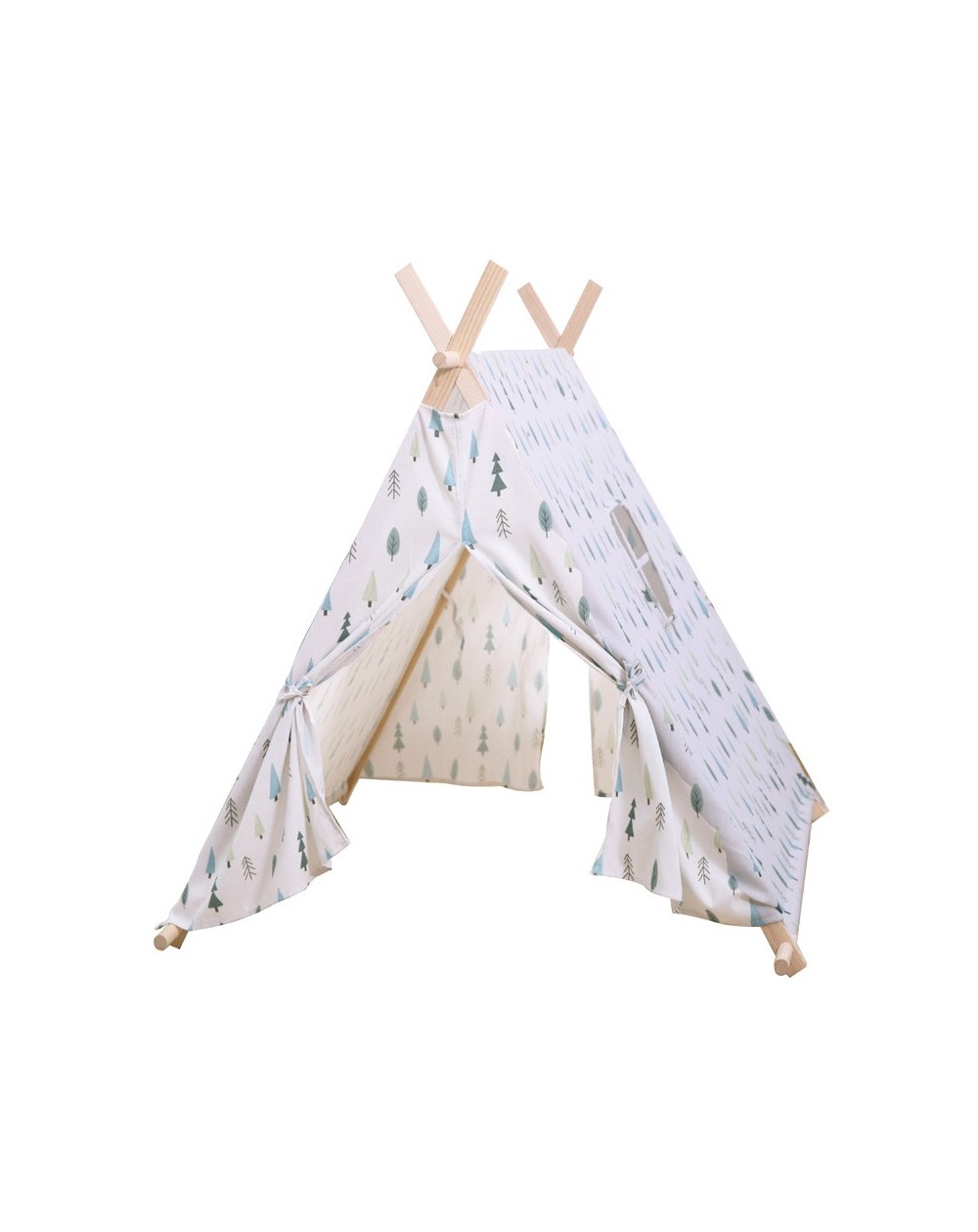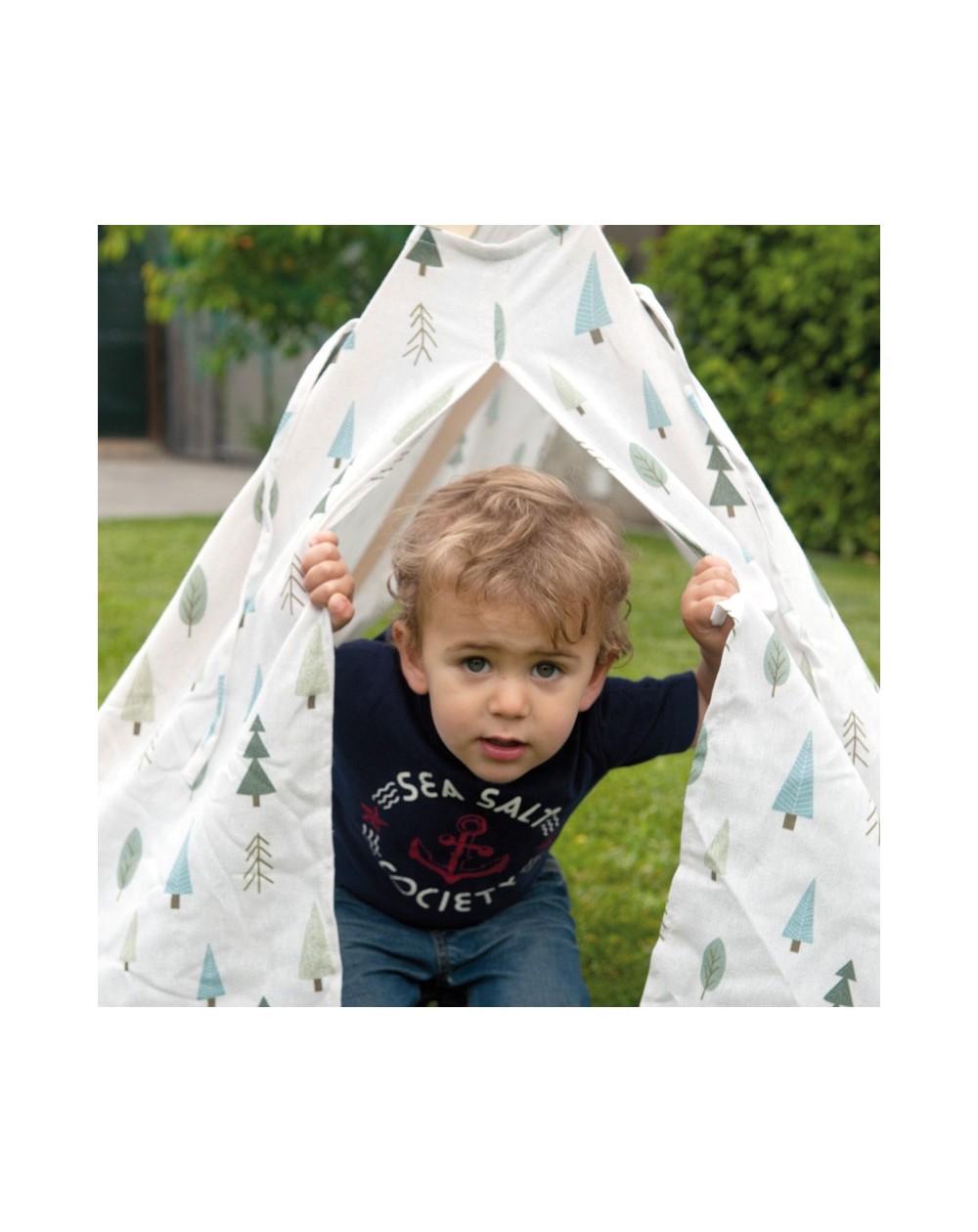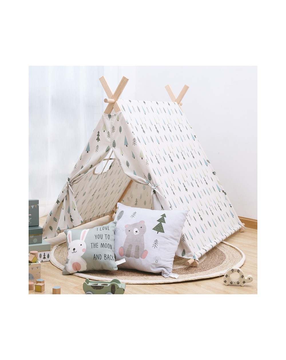 Tipi de tela y madera. Medidas 112 x 117 x 105 cm.