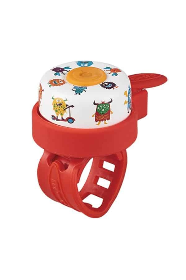 Timbre infantil con divertidos monstruos, ideal para dar un toque original y seguro al patinete o bicicleta de tu peque.