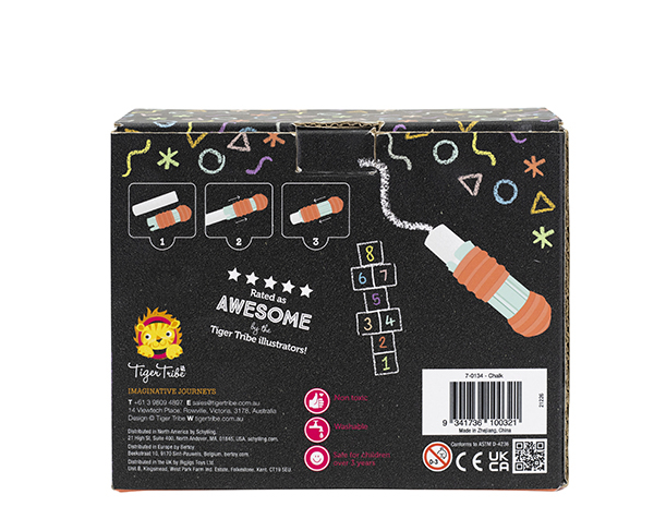 Diseñada para manos pequeñas, esta tiza es perfecta para un juego clásico de rayuela, crear un mural al aire libre o decorar el camino de entrada. Cada paquete incluye un soporte para tiza de fácil agarre para ayudar a mantener las manos limpias y facilitar el dibujo.